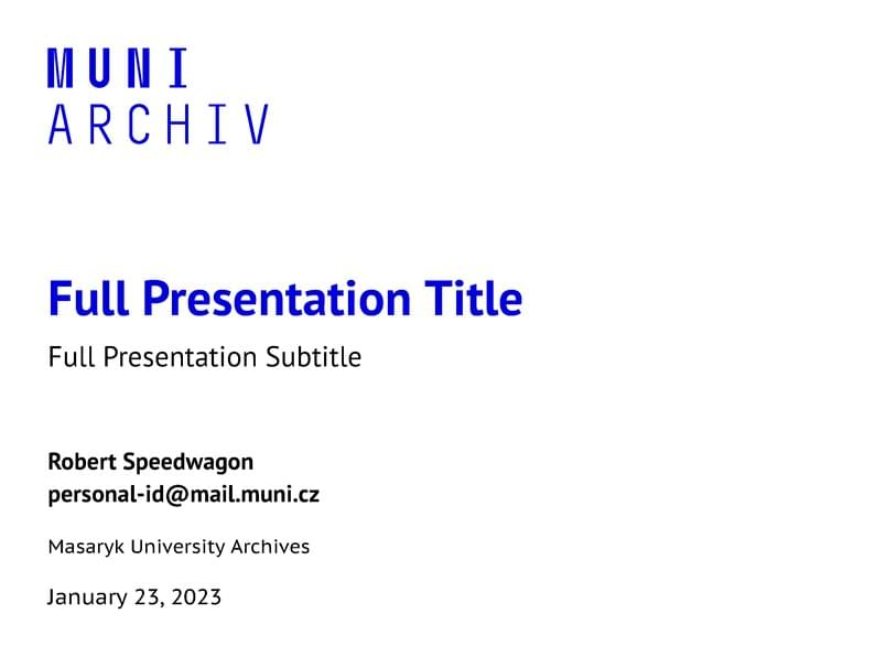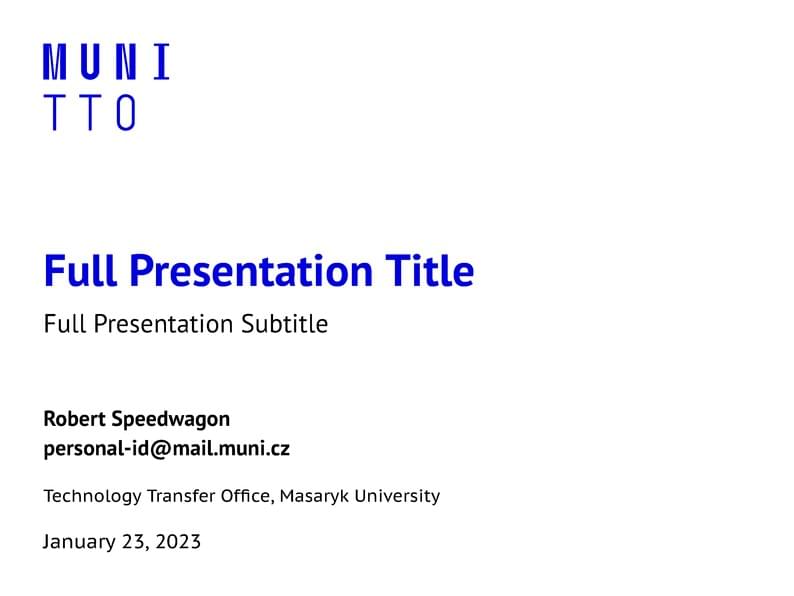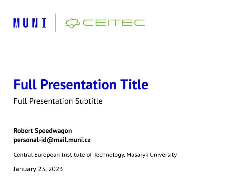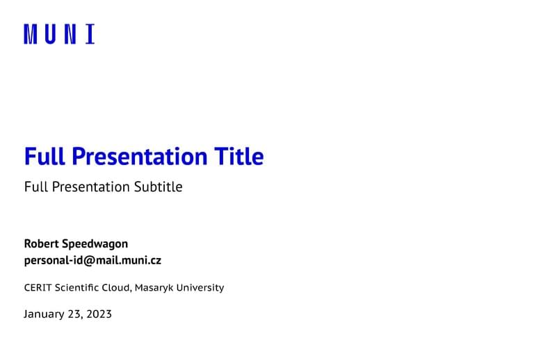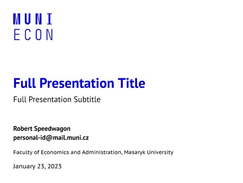 A template for mubeamer, a beamer theme for the typesetting of presentations at the Masaryk University (Brno, Czech Republic).